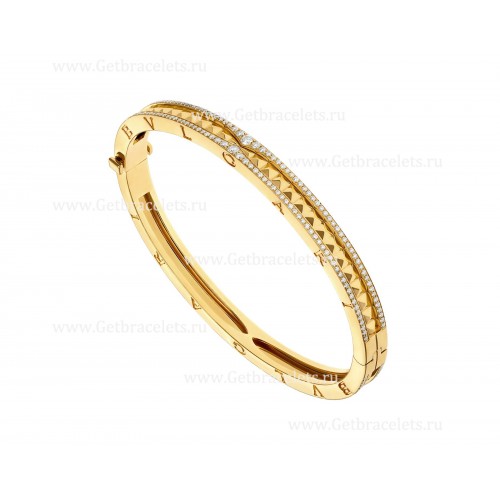 Bvlgari B.zero1 Rock 18kt geelgouden armband met bezaaide spiraal en pave diamanten aan de randen