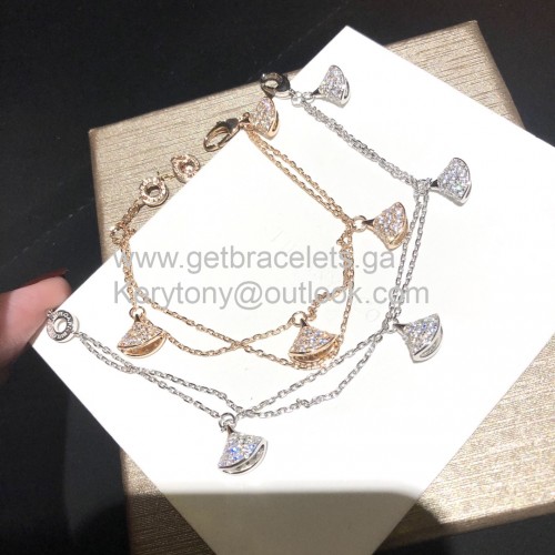 Bvlgari Divas Dream dubbele kettingarmband 4 motieven met volledige diamanten, roségoud en witgoud