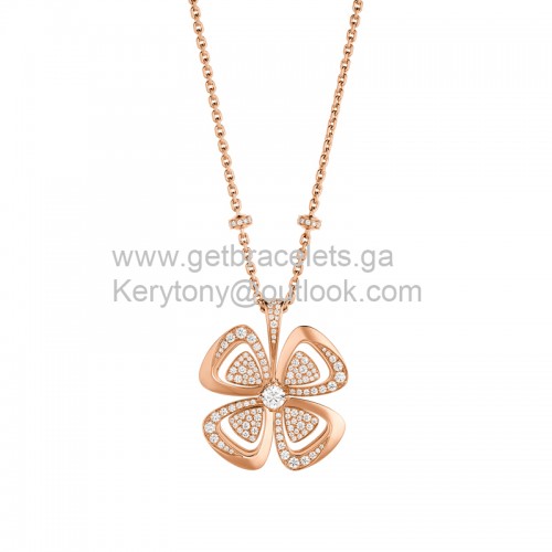 • Bvlgari Fiorever Bloemenketting met vier bloemblaadjes en diamanten Roségoud en witgoud van hoge kwaliteit