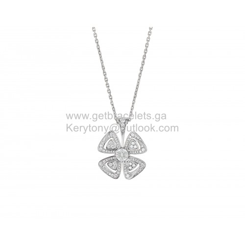 Bvlgari Fiorever ketting met één ronde diamant en pave diamanten witgoud