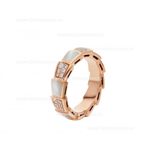 Bvlgari Medium Serpenti Viper 18k roségouden ring met parelmoerelementen en pavé-diamanten