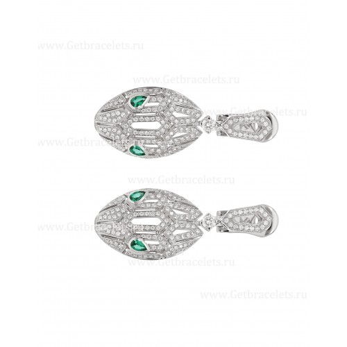 Bvlgari Serpenti 18K witgouden oorbellen met pave diamanten en smaragdgroene ogen