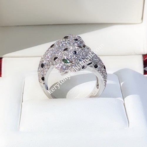 Productnaam< /span>:Dubbele Panthere de Cartier-ring witgoud met diamanten Materiaal:316L titanium staal + 18K goudlaag Kleur:Geel goud/wit goud/zwart keramiek Materiaaleigenschappen:Vervaagt nooit, kan onder water worden gedragen