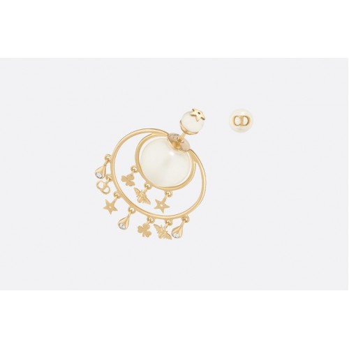 • Dior Tribales geelgouden bloem/bij/ster/CD-hangers vrouwtjes asymmetrie pareloorbellen