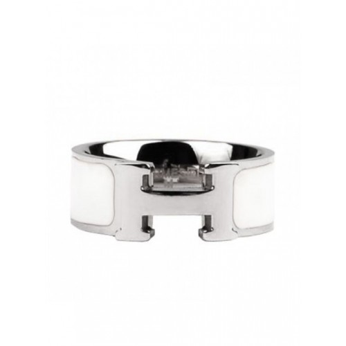 Hermes Emaille Clic H-ring in 18kt witgoud met wit