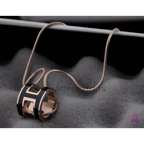 Hermes 3D Pop &#8220;H&#8221; logo Snake Bone zwarte ketting in roze goud