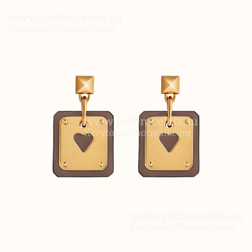 Hermes As de Coeur Oorbel Geel Goud met Leer Rood/Wit/Zwart/Oranje