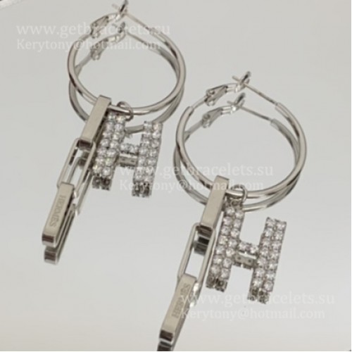 Hermes Dames H LOGO Sterling zilveren oorbellen met diamanten
