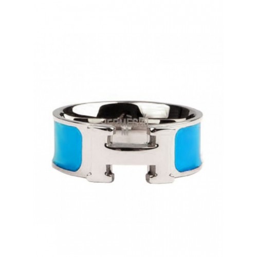Hermes Emaille Clic H-ring in 18kt witgoud met blauw