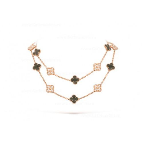 • Van Cleef Arpels Alhambra lange ketting 20 motieven grijs parelmoer met diamanten