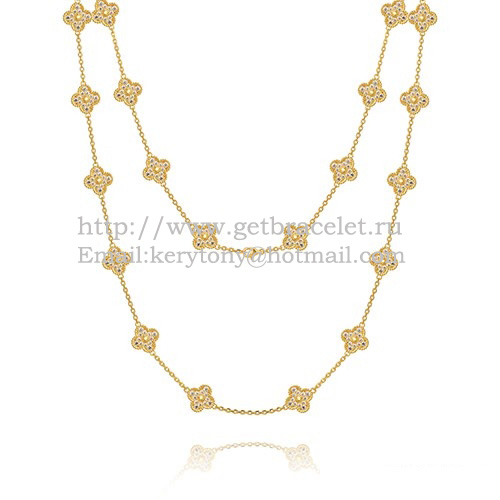 Van Cleef Arpels Alhambra lange ketting geel goud 20 motieven met pave diamanten