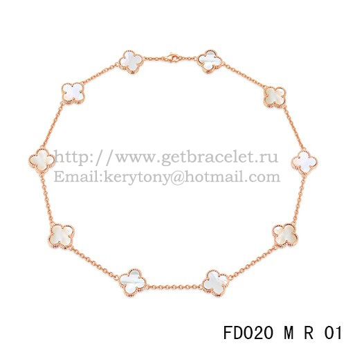 Van Cleef Arpels Alhambra Ketting Roze Goud 10 Motieven Wit Parelmoer 45cm
