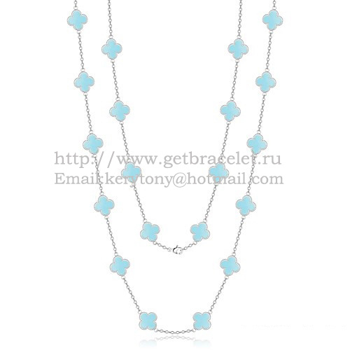 • Van Cleef Arpels Alhambra ketting witgoud 20 motieven met turquoise parelmoer