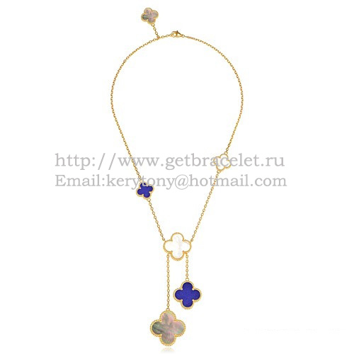 Van Cleef Arpels Magic Alhambra Ketting Geel Goud 6 Motieven Met Grijs Wit Lapis Parelmoer