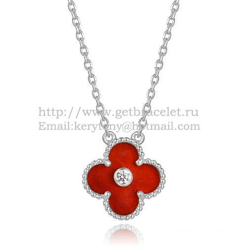 Van Cleef Arpels Alhambra hanger wit goud met Carneool parelmoer ronde diamanten