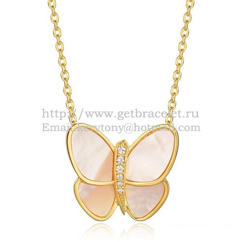 Van Cleef Arpels vliegende vlinder hanger ketting geel goud met witte parelmoer diamanten