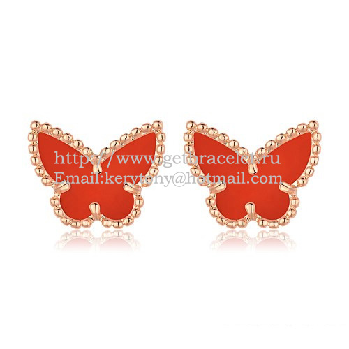 Van Cleef Arpels Zoete Alhambra Vlinder Oorbellen Roze Goud Met Carneool Parelmoer