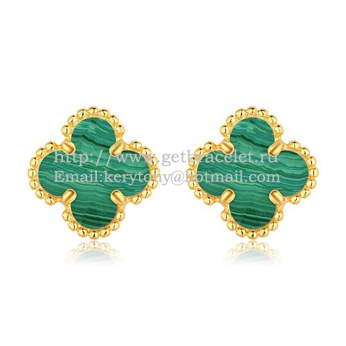 Van Cleef Arpels Sweet Alhambra Oorbellen Geel Goud Met Malachiet Parelmoer
