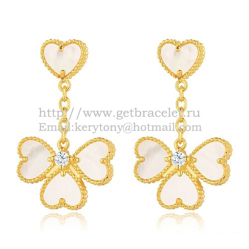 Van Cleef Arpels Sweet Alhambra Effeuillage Oorbellen Geel Goud Met Witte Parelmoer