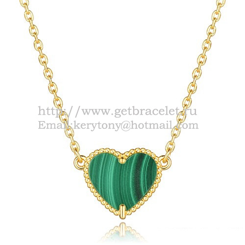 Van Cleef Arpels Zoete Alhambra Hart Hanger Geel Goud Met Malachiet Parelmoer