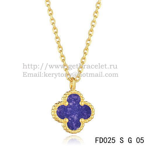 Van Cleef Arpels Sweet Alhambra Hanger Geel Goud Met Lapis Steen Parelmoer 9mm