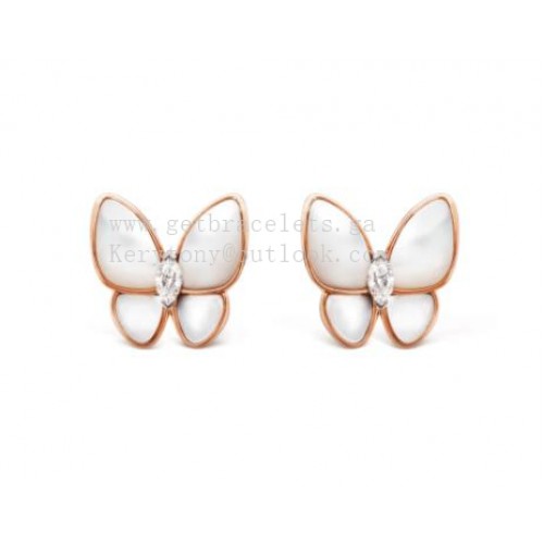 Van Cleef Arpels Twee vlinderoorbellen Parelmoer met diamant Roségoud