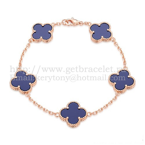 Van Cleef Arpels Alhambra Armband 5 Motieven Roze Goud met Lapis Parelmoer