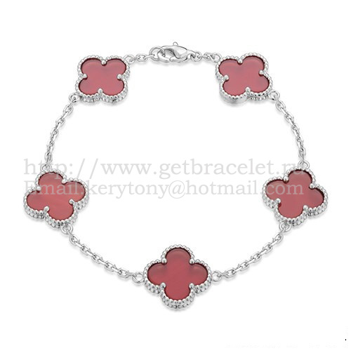 Van Cleef Arpels Alhambra Armband 5 Motieven Witgoud met Carneool Parelmoer