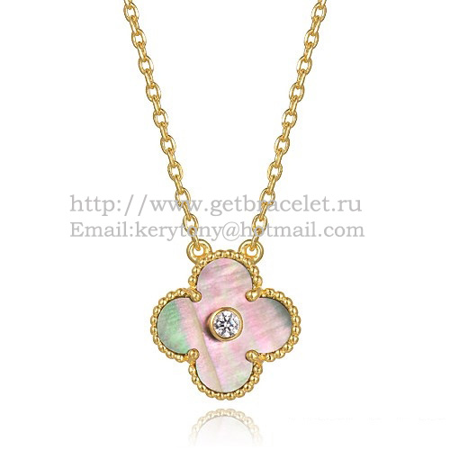 Van Cleef & Arpels Alhambra-hanger in beperkte oplage. Deze prachtige oogverblindende witte schelphanger Vintage Alhambra maakt deel uit van de serie, zijn unieke kleur en inname-charme die in de jaren 70 voor het eerst in de Alhambra-serie werd toegevoegd, voegt kleurrijk toe. Vintage Alhambra hanger stralend goudkleurig licht, versierd met een centrale ronde diamant van 0,06 kt voor een hals vol elegantie. Bovendien kunnen meer mensen de gepersonaliseerde hanger toevoegen die voor altijd unieke sieradenschatten heeft gegraveerd.