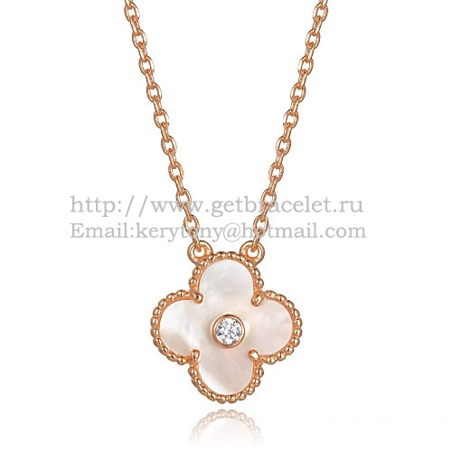Van Cleef Arpels Alhambra hanger roze goud met witte parelmoer ronde diamanten