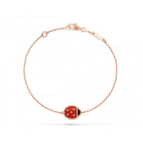 Van Cleef Arpels Lucky Lange Armband Gesloten Vleugels Lieveheersbeestje Rose Goud Carneool Onyx