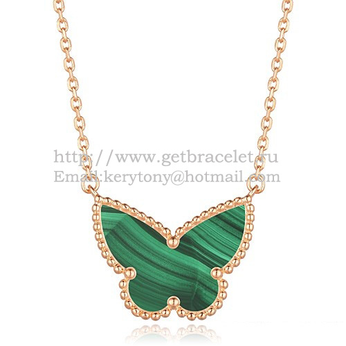 Van Cleef Arpels Lucky Alhambra Vlinderhanger Roze Goud Met Malachiet Parelmoer