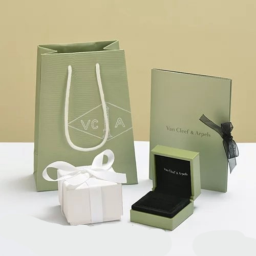 Inclusief een Van Cleef & Arpels Ring Box, een geschenkdoos, een boodschappentas en Van cleef & arpels kaart kaart.